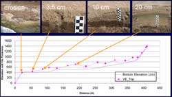 Tsunami Sand DepositsThe researchers surveyed beach profiles to document erosion (common near the coast) and deposition (common inland) by the tsunami. Sand eroded from beaches probably provided much of the sand that was deposited inland. The survey team dug trenches in the tsunami deposits to measure their thickness and to examine other characteristics that can shed light on how high the waves were and how fast the water was flowing. Data from the sediment deposits will not only tell scientists about the recent tsunami but also help them recognize and interpret the deposits of ancient tsunamis, which, in turn, will help them better understand an area’s tsunami history and its likely tsunami risk. See also: